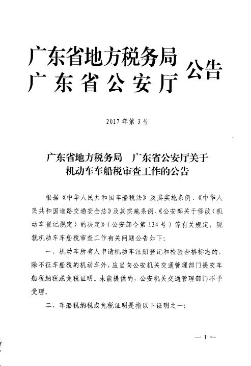 关于《广东省地方税务局 广东省公安厅关于机动车车船税审查工作的公告》的解读