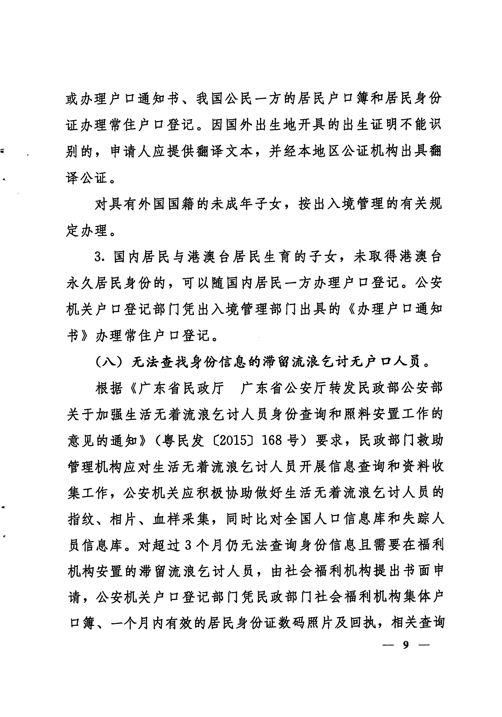关于贯彻落实《广东省人民政府办公厅关于解决无户口人员登记户口问题的实施意见》的通知