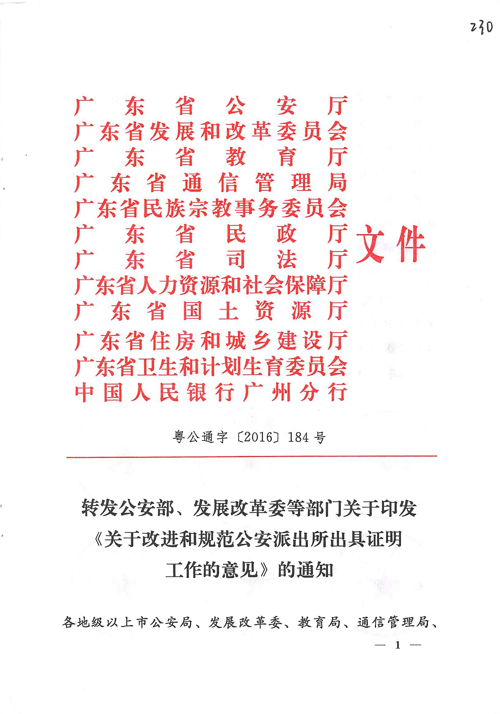 转发公安部、发展改革委等部门关于印发《关于改进和规范公安派出所出具证明工作的意见》的通知
